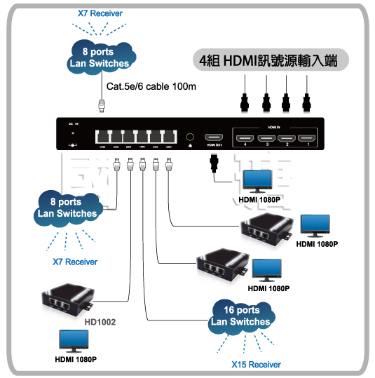 ¤ä´©4­ÓHDMI¿é¤J·½¡A6­Ó¥i¥HµâÃ쩵ªøªº¿é¥X¤f¡]³q¹Lcat.5e/6½u§÷¡^